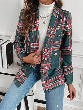 LUNE جاكيت طباعة مربع النقش ياقة طوق صف ازرار مزدوجة