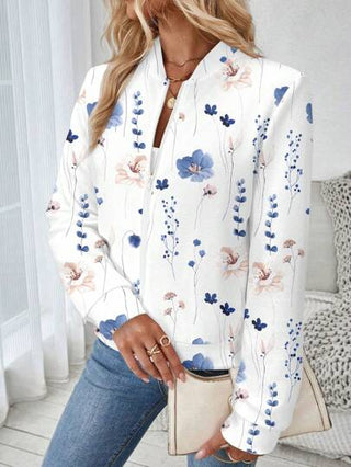 LUNE جاكيت نسائي كاجوال طباعة زهور عتيقة مزوّد بسوستة، مناسب للخريف/الشتاء