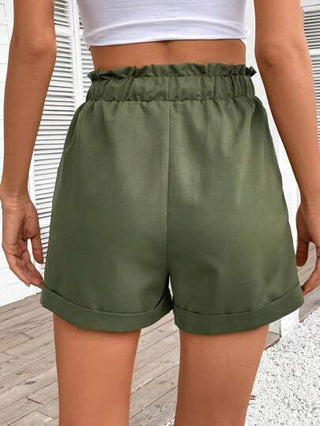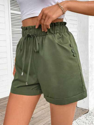 LUNE شورت نسائي بلون صلب مع حاشية بالكشكشة، رباط على الخصر وديكور بأزرار
