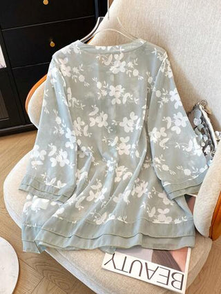 LUNE قميص/بلوزة فضفاضة فاخرة وعصرية بأكمام 3/4 مقاس كبير للنساء، وصول جديد