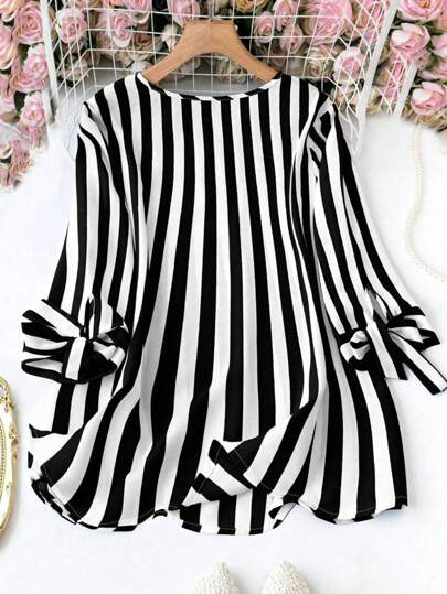LUNE قميص صيفي صغير بياقة على شكل حرف V و شريطة، أكمام 3/4 كاجوال للعطلات، توبات أكمام ثلاثية الأرباع