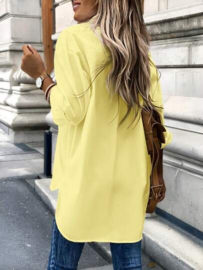 LUNE قميص كاجوال وللمكتب لون أساسي بأكمام طويلة