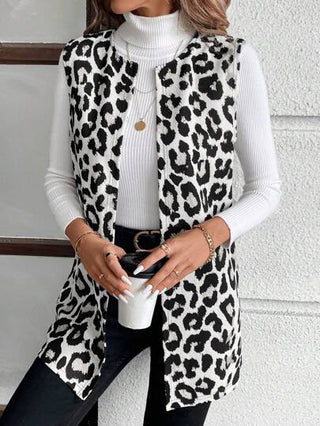 LUNE كارديجان مرقط بطبعة نمر كلاسيكي بدون أكمام للنساء