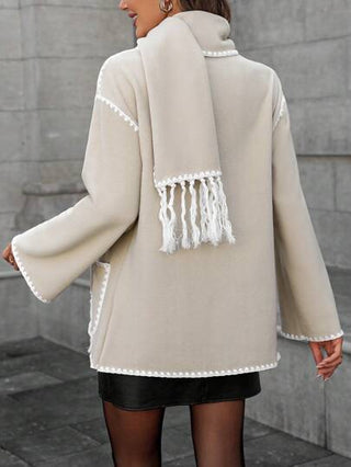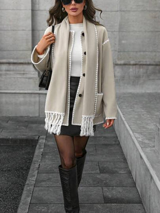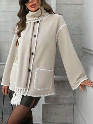 LUNE معطف كاجوال بأكمام طويلة وجيب، بتصميم زر أمامي وربطة لونين، قطعة تدفئة