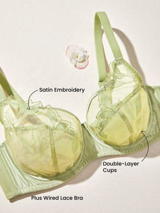 LUVLETTE حمالة صدر شبكية خضراء منسوجة شفافة بتصميم زهري من الدانتيل، سعة كاملة، مقاس كبير، تخفيف الحجم، قابلة للتنفس وبدون بطانة، ملابس داخلية منزلية