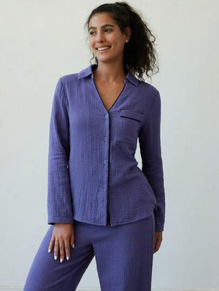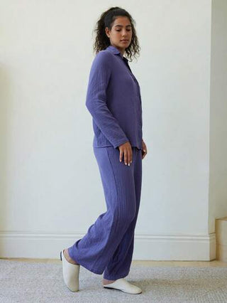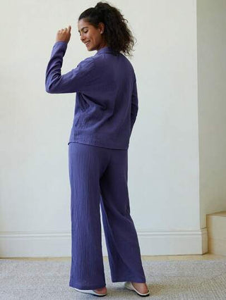 LUVLETTE مجموعة بيجامات للنساء مكونة من طاقم ملابس علوية ملابس علوية مع بنطلون سخير طويل مجعد من القطن المنفذ للهواء، مجموعات ارتداء منزلي