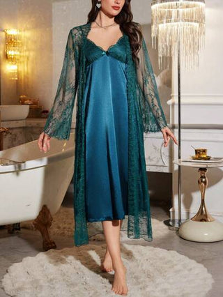 LuxeNights مجموعة ملابس نوم أنيقة للنساء من الساتان مرصعة بالدانتيل