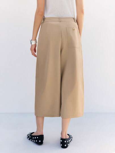 LYSMO بنطلون نساء كاجوال فضفاض بطول 7/8 بلون الخاكي
