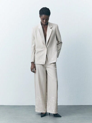 Maija بليزر نسائي ربيعي مع تصميم بسيط من الراين اللامع ، أنيق وعصري