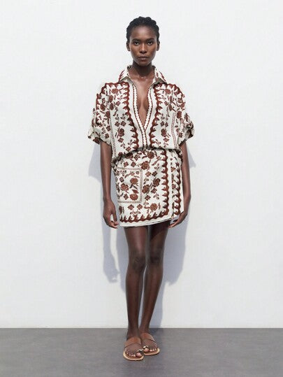 Maija تنورة كاجوال للنساء بربطة غير متماثلة وطباعة زهور، قطعة ملابس متنوعة مريحة للارتداء في العطلات والشاطئ في فصلي الربيع والصيف