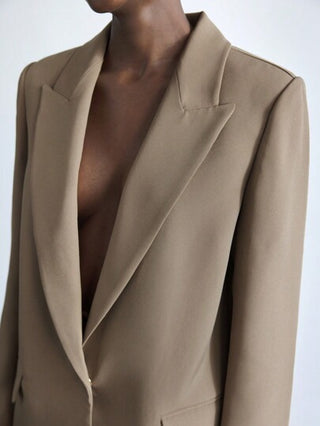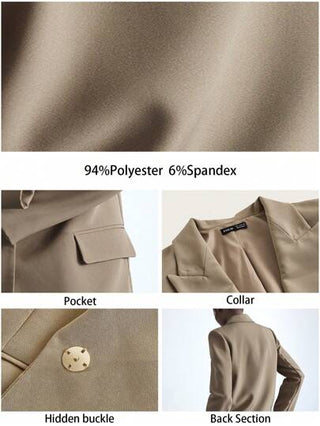 Maija جاكيت بلايزر مزود بياقة وأكمام طويلة باللون الأحادي، ذو جيوب، مناسب للاستخدام اليومي في الربيع المبكر ،للنساء