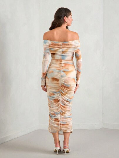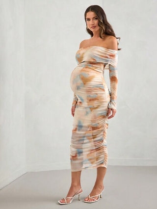 MaterniChic مجموعة ملابس علوية كتف مكشوفة بأزهار مكسرة وتنورة رباط قابلة للضبط مناسبة للحمل، مناسبة للحفلات والمناسبات في فصل الخريف