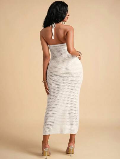 MaterniChic فستان حمل عادي يحمل ديكور زهري ثلاثي الأبعاد، حمالة الرقبة للعطلات