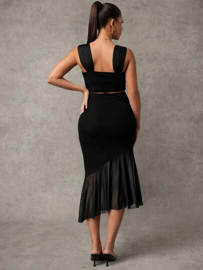 MaterniChic 2 قطعة مجموعة توب بدون أكمام للحمل وتنورة ذات خصر مطاطي، لون أحادي محبك مطابق للجسم