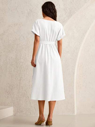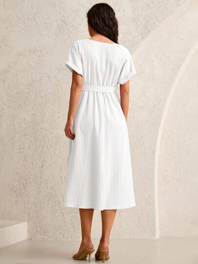MaterniWear فستان حمل كاجوال بأكمام خفافيش ورقبة V متقاطعة بلون سادة