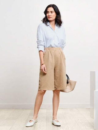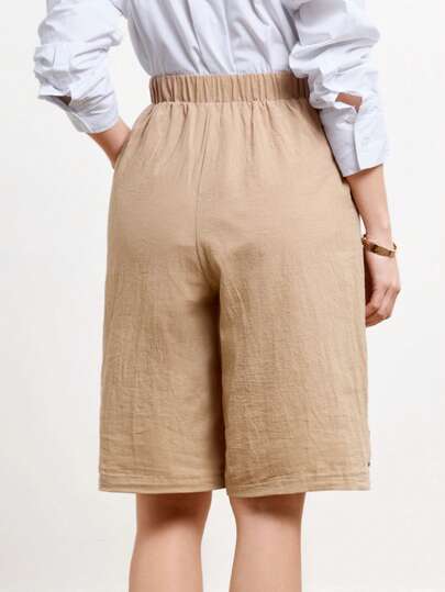 Miaspire شورت واسع المقاس بخصر مطاطي وديكور أزرار ، يناسب العديد من الأنماط