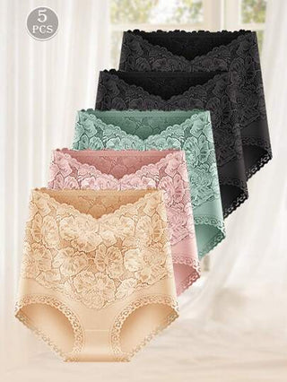 MIOTAN ملابس داخلية لسيدات 5قطع/عبوة بخصر عالي، كشكشة دانتيل، جاكار مبطن بدون غرز
