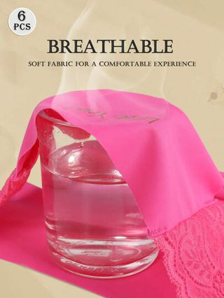 MIOTAN 6قطع/عبوة سراويل داخلية نسائية ذات خصر منخفض باللون الصلب وتطريز من الدانتيل، ملابس داخلية نسائية