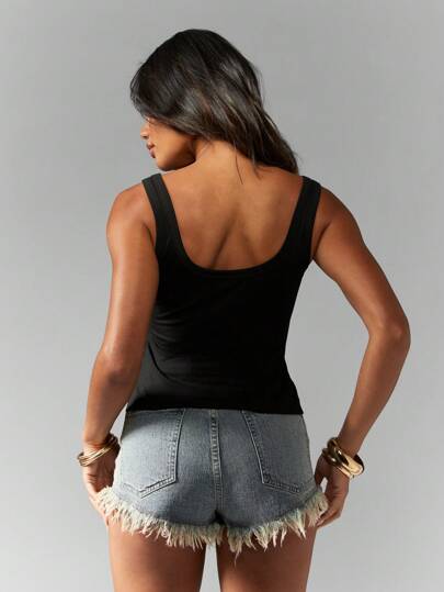 MISSGUIDED ملابس علوية بلا أكمام من جيرسي مرصع، ستايل نجم روك للحفلات و المهرجانات الصيفية، بدون أكمام، أناقة لإطلالة حزبية ، قطعة ملابس رسالة للموضة الحضرية اليومية