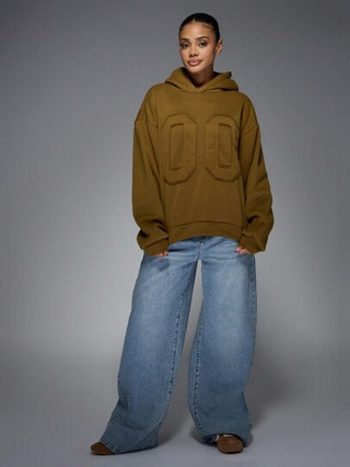 MISSGUIDED هودي محصور الخصر مرقّع بحرف كلية أسلوب الرياضيات الجامعية، ملابس شتوية للشارع مع قلنسوة كبيرة الحجم، ملابس كاجوال رياضية