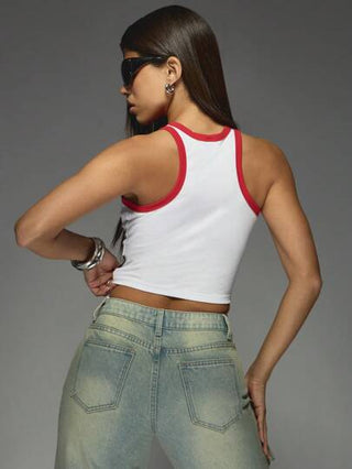 MISSGUIDED Missguided x Playboy ملابس علوية ملابس علوية أكمام بلا أكمام بطباعة النص وتفاصيل ملونة للحواف على شكل سباقات