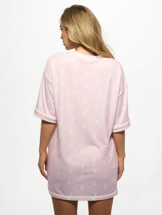 MISSGUIDED Missguided x Playboy ملابس علوية نوم مطبوع بأرانب مقاس كبير، نوم مريح، ملابس خروج للراحة، بيجامة ليل طويلة، ملابس علوية ليل ناعم ودافئ، هدية عطلة الشتاء
