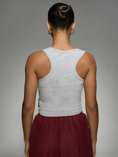 Missguided x Playboy MISSGUIDED تيشيرت كاجوال بياقة مكشوفة مربعة وأكمام بدون أكمام مزخرف برسومات أرنب