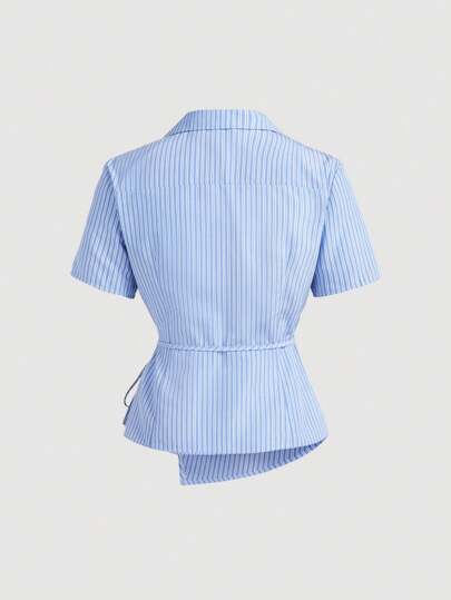 MOD بلوزة سيدات ذات ياقة مفرودة أزرق وأبيض مخطط طويلة الأكمام، رسمية للعمل، ملابس كاجوال للسيدات، أزياء التسعينيات، ملابس الخريف، ملابس للعمل، ملابس للعودة للمدرسة، بلوزات سيدات، ملابس علوية خروج، قميص كم طويل، بلوزات عمل للسيدات