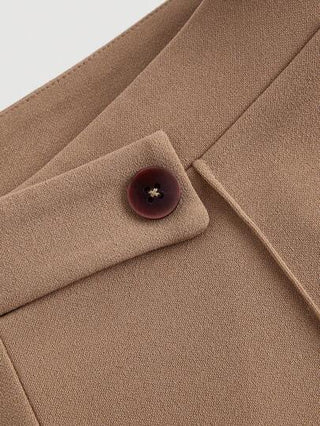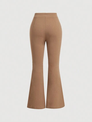 MOD بنطال سراويل بخصر مرتفع ذات أرجل مقعرة، بيج/أسود، محبك الأضلاع، للنساء