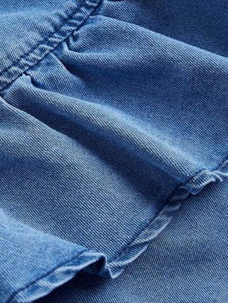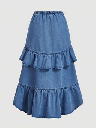MOD تنانير جينز معدلة الخصر مع تصميم مموج وحافة غير متساوية للأحجام الكبيرة، موضة كاجوال