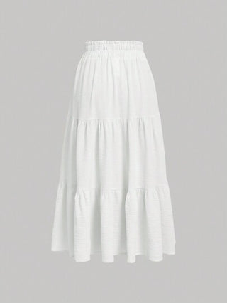 MOD تنورة بوهيميّة طويلة، تنورة مطوّية ذات خصر كيس ورقي وطبقات متدرّجة من الكشكشة بالذيل