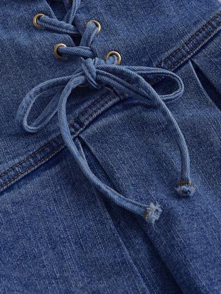 MOD تنورة جينز قصيرة بحبل ربط دائرية للبس اليومي بلون سادة للنساء بمقاس كبير