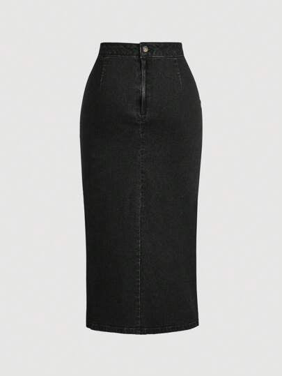 MOD تنورة جينز كاجوال مسحوبة السحاب بتصميم لون أحادي للنساء