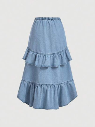 MOD تنورة جينز مريحة للنساء مع كشكشة وكتل من اللون والرباط