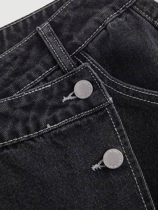 MOD تنورة جينز مستقيمة متوسطة الطول للنساء ، تنورة خريفية للنساء ، ملابس شارع للنساء ، تنورة جينز للنساء ، تنورة غير متناظرة ، ملابس خريفية للنساء ، تنورة شتوية ، كاجوال للعمل للنساء ، ملابس شتوية للنساء