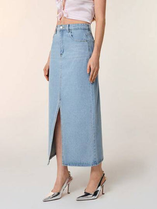 MOD تنورة دنيم طويلة غير رسمية خط A مع جيوب وشق في الذيل للنساء