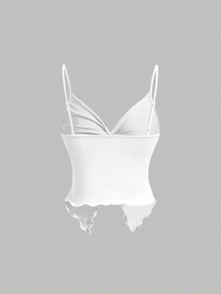 MOD توب نسائي بنمط ألواح متداخلة بدون أكمام، ملابس علوية أنيق، توب كامي أصفر