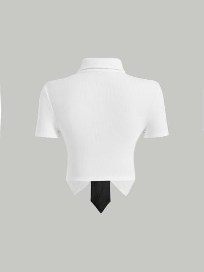 MOD تي شيرت قصير بربطة عنق حافة غير متماثل