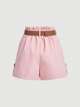 MOD سروال قصير واسع مع حزام نسائي وجيوب مائلة