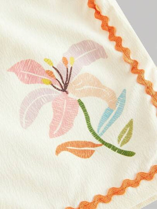 MOD شورت أنيق وخفيف للفصل الصيفي مع طبعات زهرية وتصميم مطرز باللون الملون