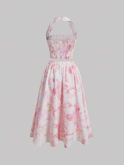 MOD طقم تنورة وأعلى ربطة صبغة التعتيق للنساء، طباعة أومبري، طباعة الرخام