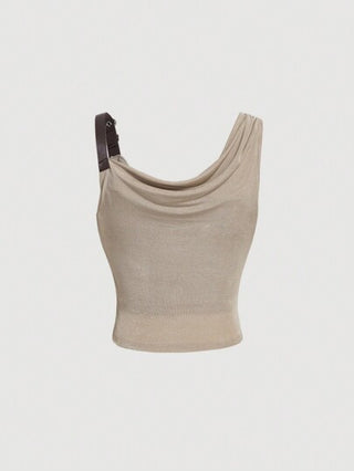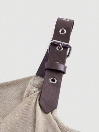 MOD ملابس علوية حمالات خفيفة الوزن بلون كاكي مع تصميم جلد الإبزيم مزدوج موجز ثوب للصيف الجزء العلوي واسع عند الخصر عالي الدقة وملحقات علامات المعدنية الطفيفة المؤرخة