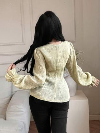 Modelyn العيد بلوزة أنيقة للنساء ذات لون أحادي وأنسجة منسوجة مع زهور ثلاثية الأبعاد مجوفة وأكمام طويلة