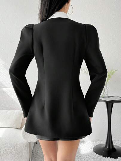 Modelyn بلايزر أنيق ذو رقبة واقفة وأكمام منتفخة، ملون للنساء ، للربيع/الخريف