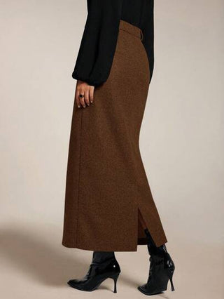 Modelyn تنورة أنيقة طويلة بخط A ذات لون واحد مع جيوب وأزرار أمامية للنساء