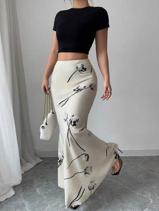 Modelyn تنورة مطاطية قابلة للشد ذات إغلاق بسحاب مطبوعة منسوجة للنساء