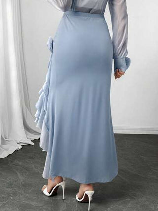 Modelyn تنورة نسائية بطبعة زهور وتدرجات لون واحد ومنحنية الحافة