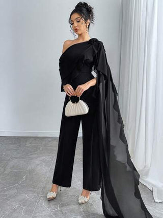 Modelyn جمبسوت نسائية بلون أحادي مع فتحة رقبة غير متماثلة ولوحة قصاصات مزينة بالحشو