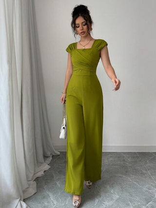 Modelyn جمبسوت نسائية ذات لون أحادي وياقة مربعة، للارتداء اليومي العادي
