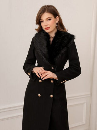 Modelyn معطف أسود ثنائي الصدر بياقة بورغ